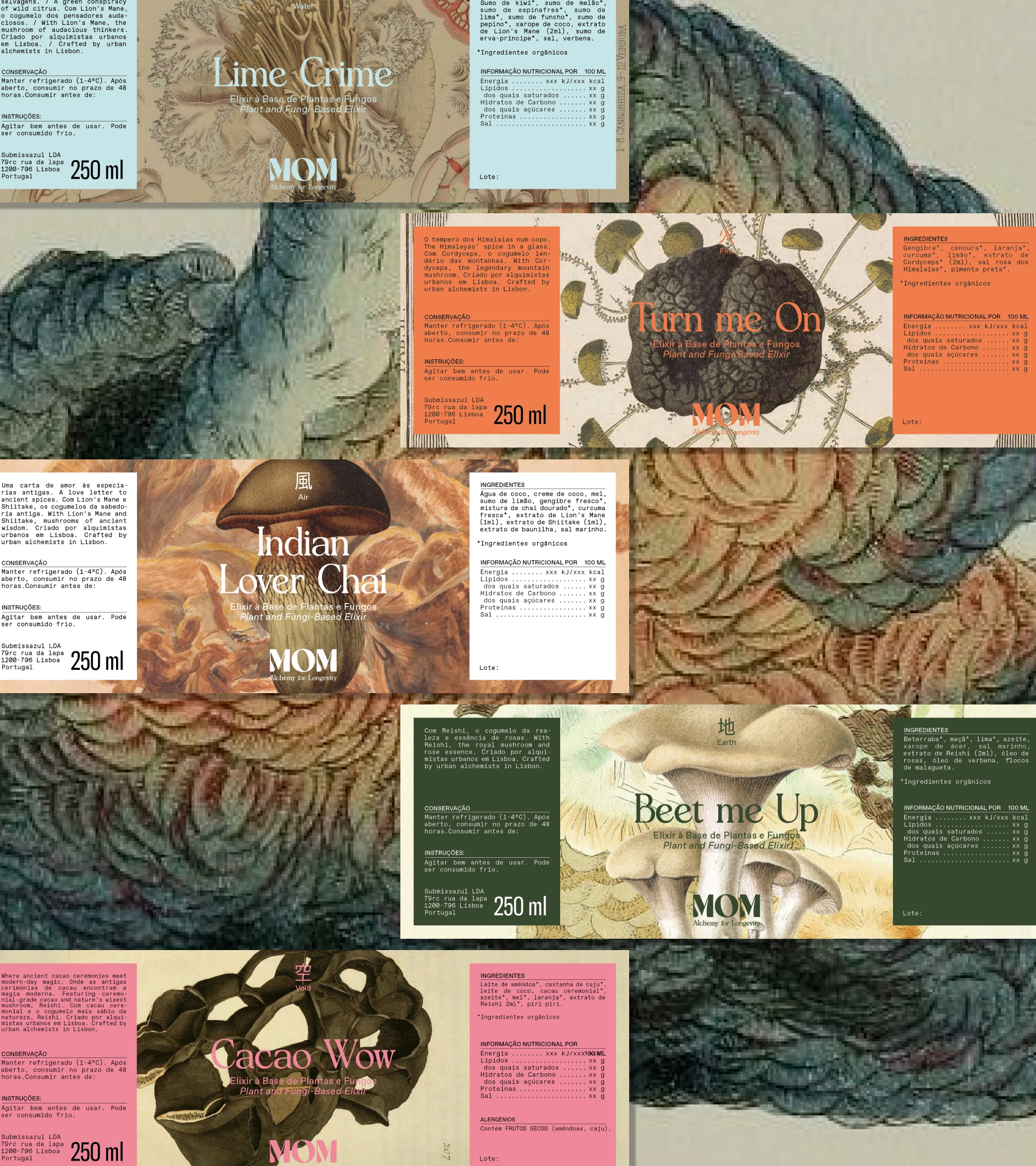 Für MoM entwickelten wir ein visuelles Erscheinungsbild, das den innovativen Charakter der Marke konsequent übersetzt. Das Branding kombiniert eine warme, erdige Farbwelt mit klaren, grafischen Formen und einer typografisch prägnanten Wortmarke. Ein zentrales gestalterisches Element bilden historische, naturwissenschaftliche Pilzillustrationen, die als Collagen und Überlagerungen in den Designs eingesetzt werden. Die Verpackungsgestaltung bringt die Produktvielfalt auf den Punkt – reduziert, wiedererkennbar und bereit für den Kühlschrank der Zukunft.