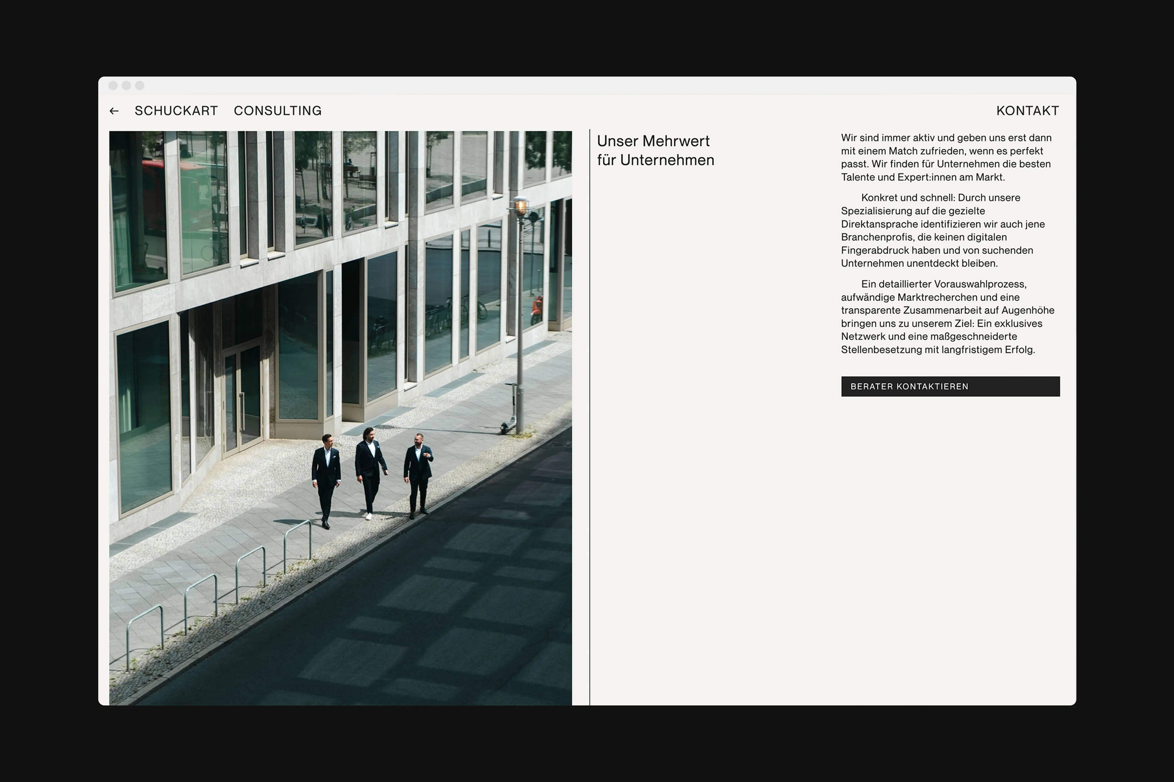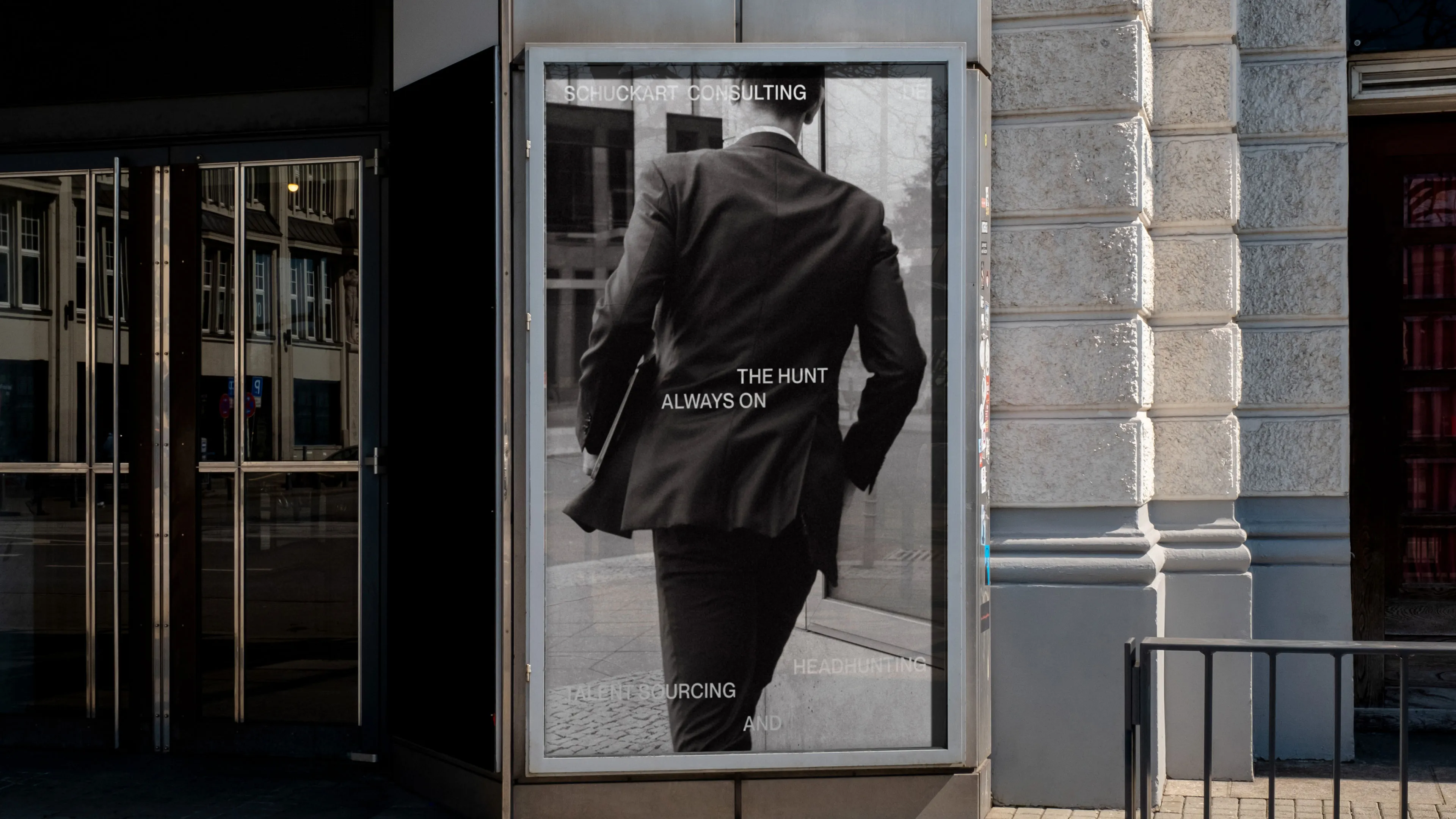 Wir begleiteten die jungen Headhunter beim Relaunch ihrer Marke und setzten ein Corporate Design, eine Webseite, Geschäftspapiere, sowie dokumentarische Fotos und Videos des Teams in Aktion um. Den Slogan "Always On The Hunt" erdachten wir als kreative Leitidee, an die sich der dynamische Ansatz von Design und Bildsprache anlehnt.